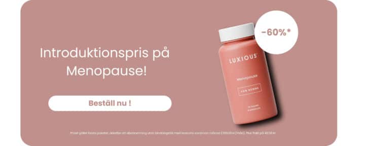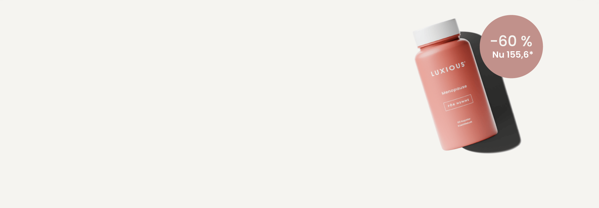 Luxious Menopause innehåller bland annat extrakt av humle, salvia och rödklöver, samt en rad viktiga vitaminer. Tillskottet kan stödja kroppens hormonella balans och bidra till ökad komfort under klimakteriet. Luxious Menopause kan också bidra till känslomässig balans, normal benhälsa och upprätthållande av energinivån.