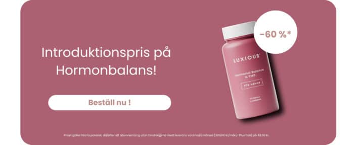 Vi vill lyfta fram vikten av ökad uppmärksamhet kring kvinnors hälsa. Därför har vi också utvecklat ett kosttillskott för kvinnor som upplever premenstruella symtom eller nedsatt hormonbalans: Luxious Hormonal Balance & PMS.